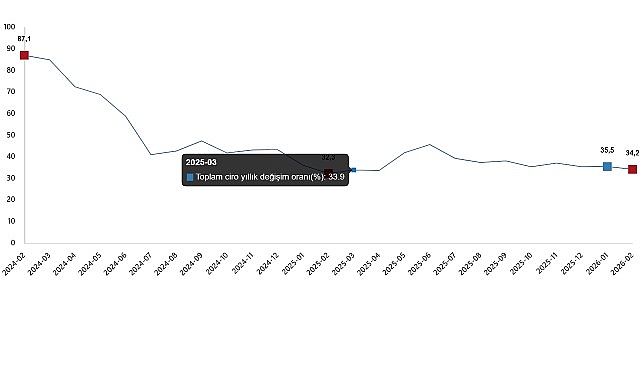 Toplam ciro yıllık değişim oranı(%), Şubat 2026