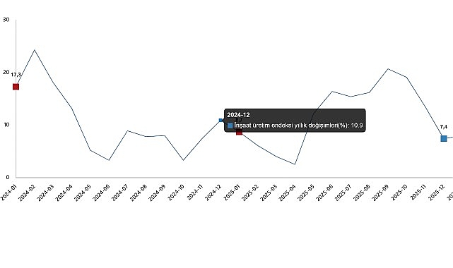 İnşaat üretim endeksi yıllık değişimleri(%), Ocak 2026