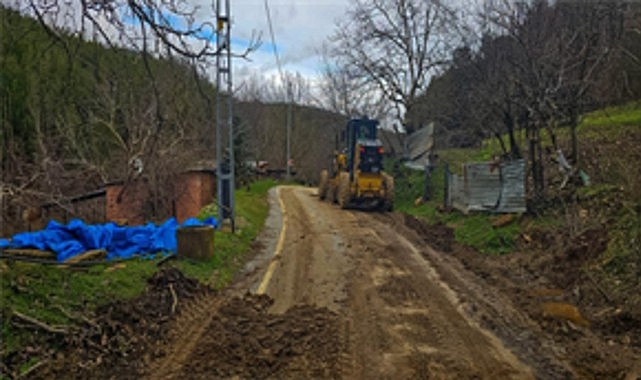 •Bıçakçı Mahallesi’nde toprak kaymaları temizlenerek yol güvenli hale getirildi.