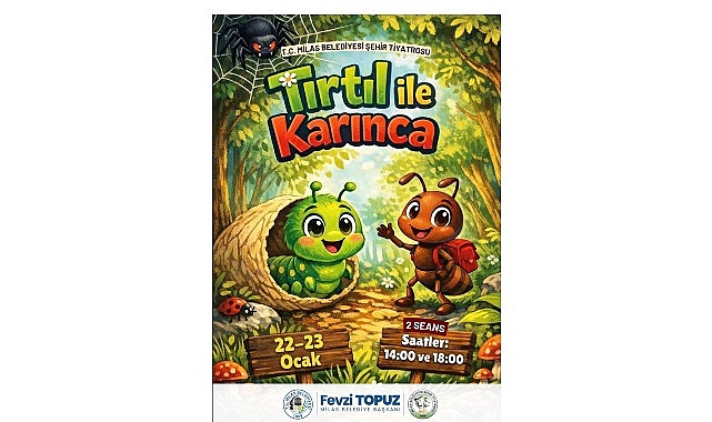 Milas Belediyesi tarafından çocukların kültürel ve sosyal gelişimine katkı sağlamak amacıyla düzenlenen ücretsiz tiyatro etkinliğine bir yenisini ekliyor. Çocukların hayal dünyasını zenginleştirmeyi hedefleyen ‘Tırtıl ile Karınca’ adlı oyun Milas Belediyesi ŞehirTiyatrosu ekibi tarafından sahnelenecek. Çocukların hem eğleneceği hem de öğreneceği oyunda dürüstlük, çevre bilinci ve dostluk gibi temalar interaktif bir dille anlatılıyor.
